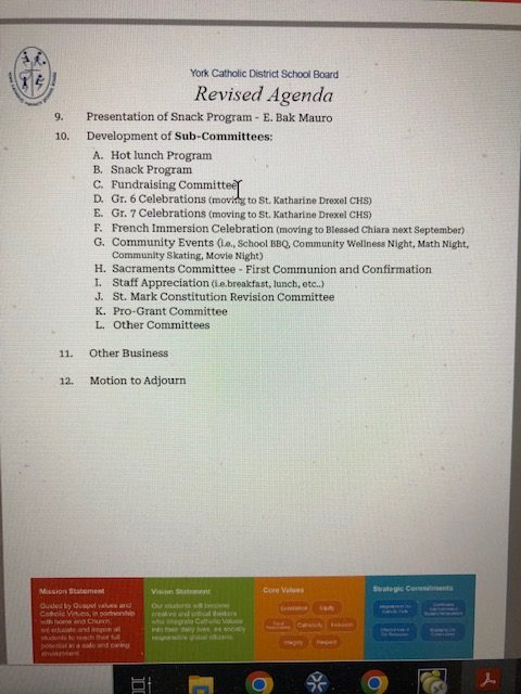 Catholic School Council Meeting October 27th 2022